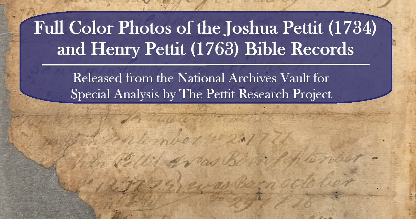 Examining the Henry Pettit Sr. Family Bible Record and the Record of his Father Joshua Pettit (as preserved in the National Archives)