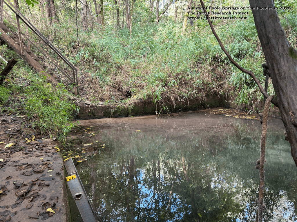 What was surprising was that most of the geographic features mentioned in old plats and deeds from the late 1700s and early 1800s were still present.  The flood of 1903 that sent a “wall of water” crashing down the river should have dramatically changed the landscape.  While it did erase several industrial mill sites from the map, many of the natural river features survived.  Several shoals and small islands were right there where they always had been.  That being said, Poole Springs was not so fortunate.  The deluge of 1903 destroyed the hotel and entombed the springs in mud.