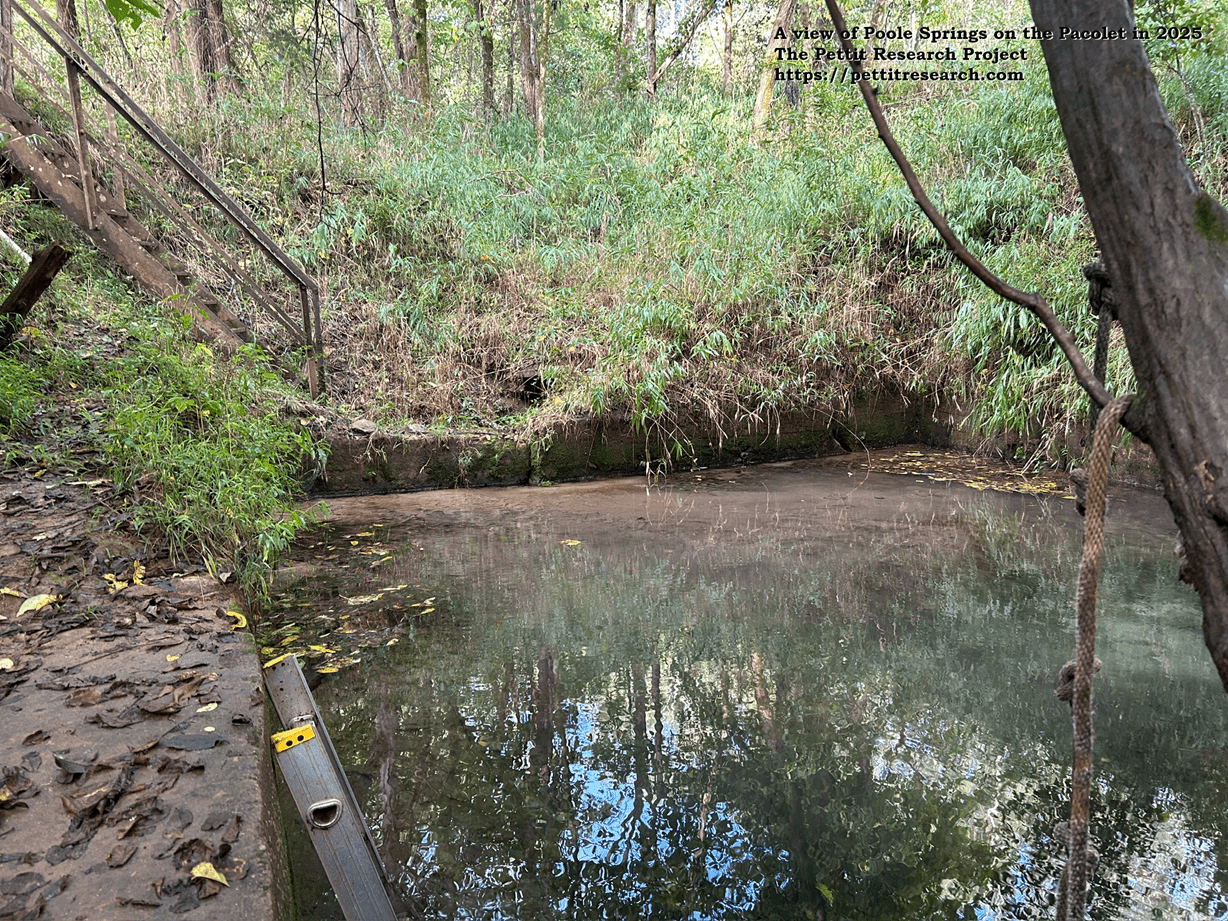 Thankfully, the story did not end there.  When excavation occurred for the pipeline right of way nearby, the Poole family had the springs dug out and restored.  Today the springs are protected on all sides by concrete walls.  The water flows through a small gate in the east wall and meanders a short distance down into the Pacolet River.
